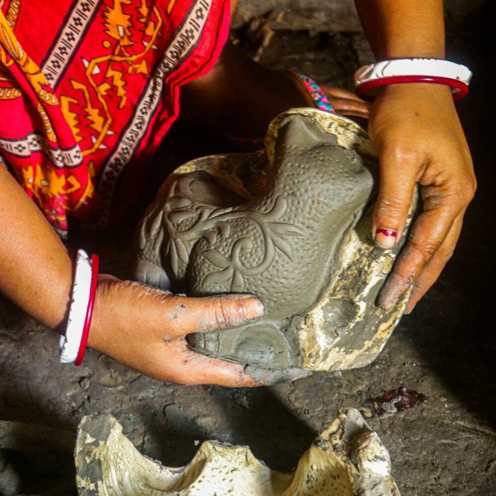- Realizzato a mano in terracotta con finitura “white wash”