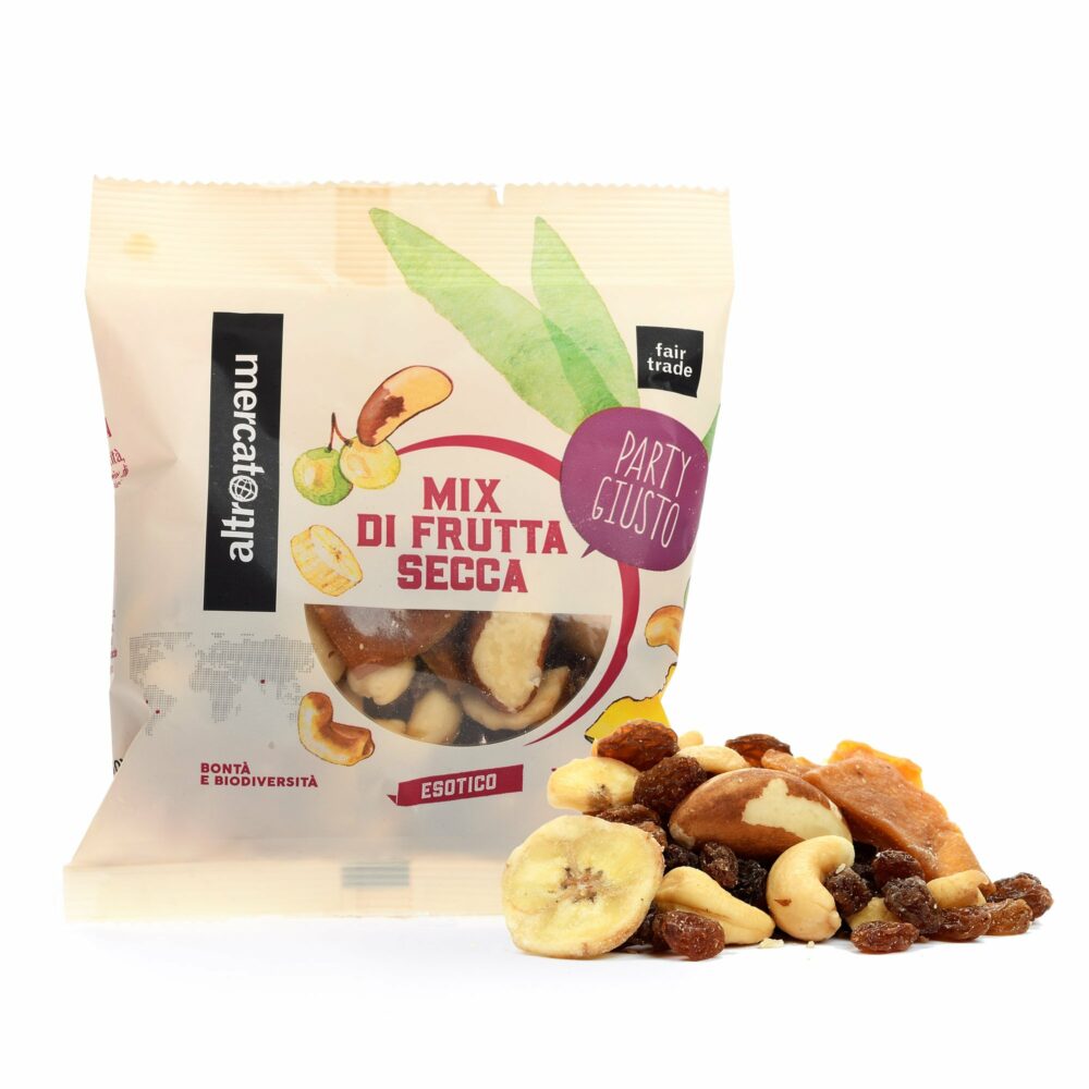 Provenienza: Uva passa dal Sud Africa, anacardi dal Brasile e dall’India, noci brasiliane dalla Bolivia, mango e banane dalle Filippine.