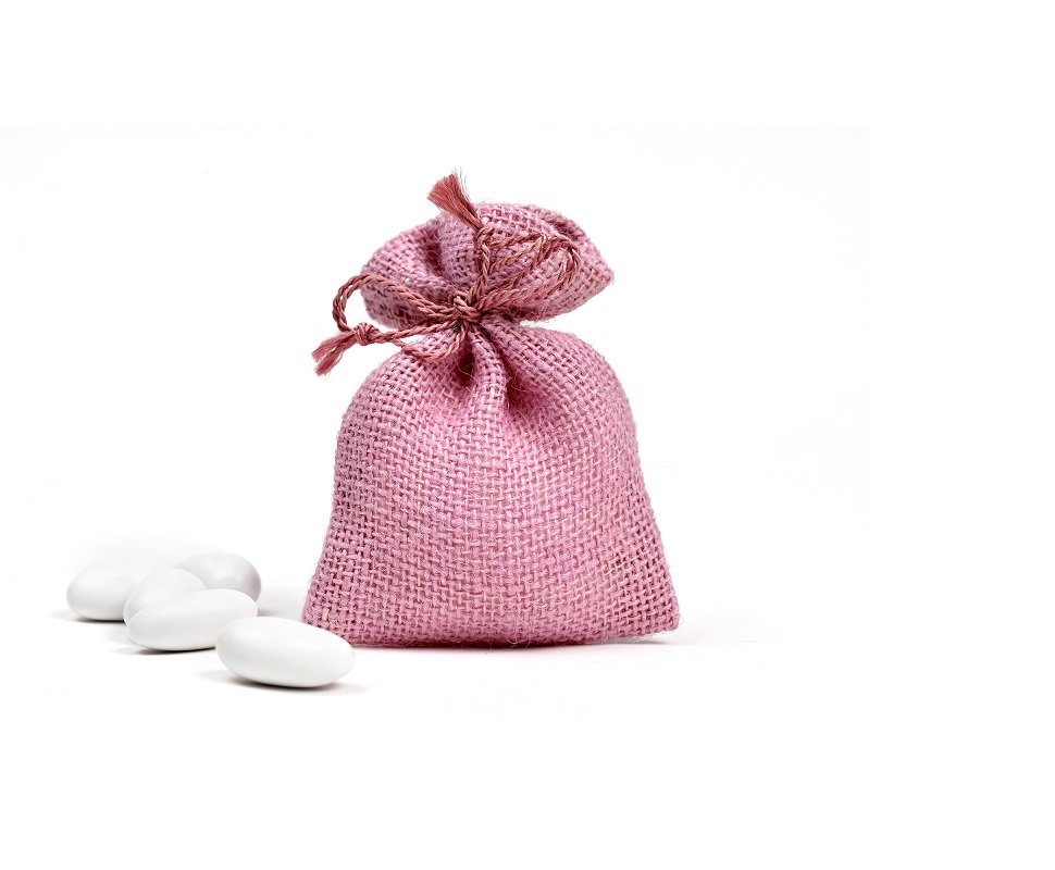 bomboniera sacchettino semplice in juta rosa confetto