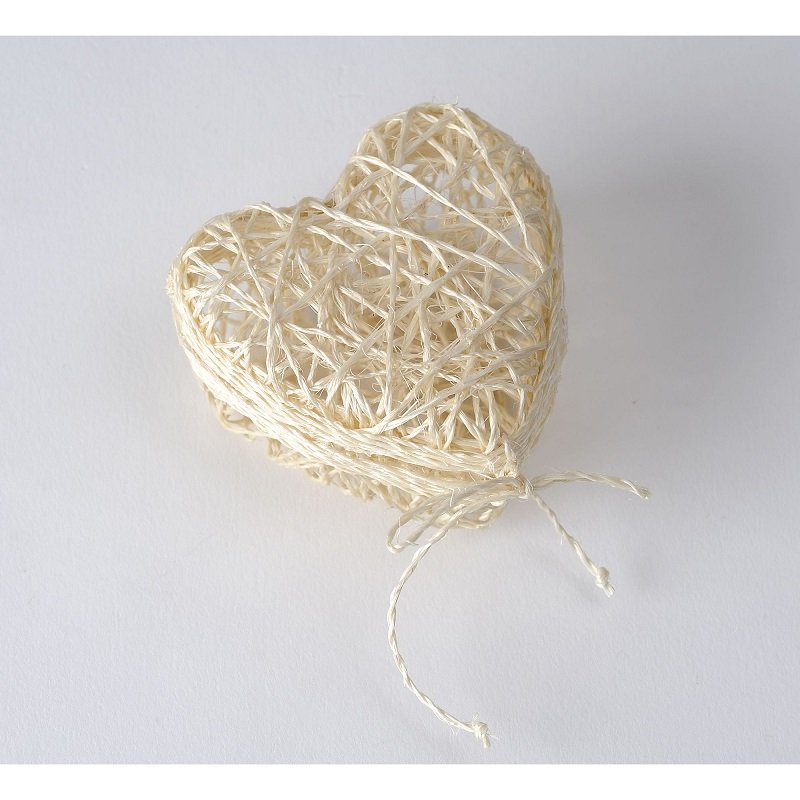 Scatolina cuoricino bombata in fibra abaca colore avorio