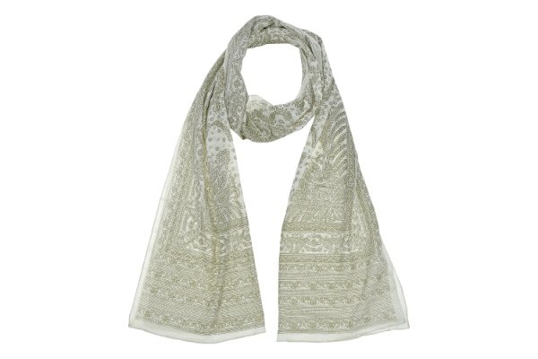 cm 50×200. Stola in 100% cotone con tipica decorazione indiana. Il filato in puro cotone garantisce ottima traspirazione e isolamento termico. La morbidezza e la resistenza la rendono particolarmente piacevole da indossare.
