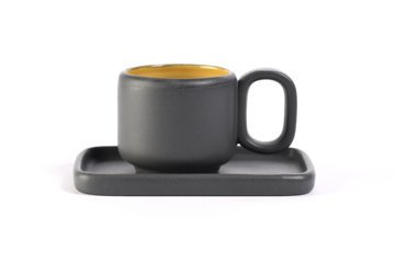 Tazzina da caffè in ceramica thailandese. Design elegante e moderno. Tazza diametro 5,8 (tot 8,8) x h 5cm. Piattino 12×8 x h1cm