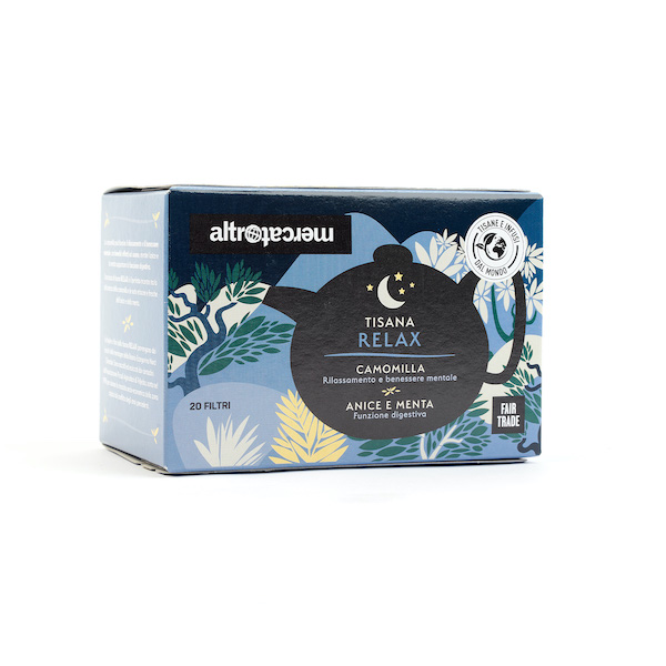 Camomilla (55%) – Anice (35%) – Menta (10%). 100% da Commercio Equo