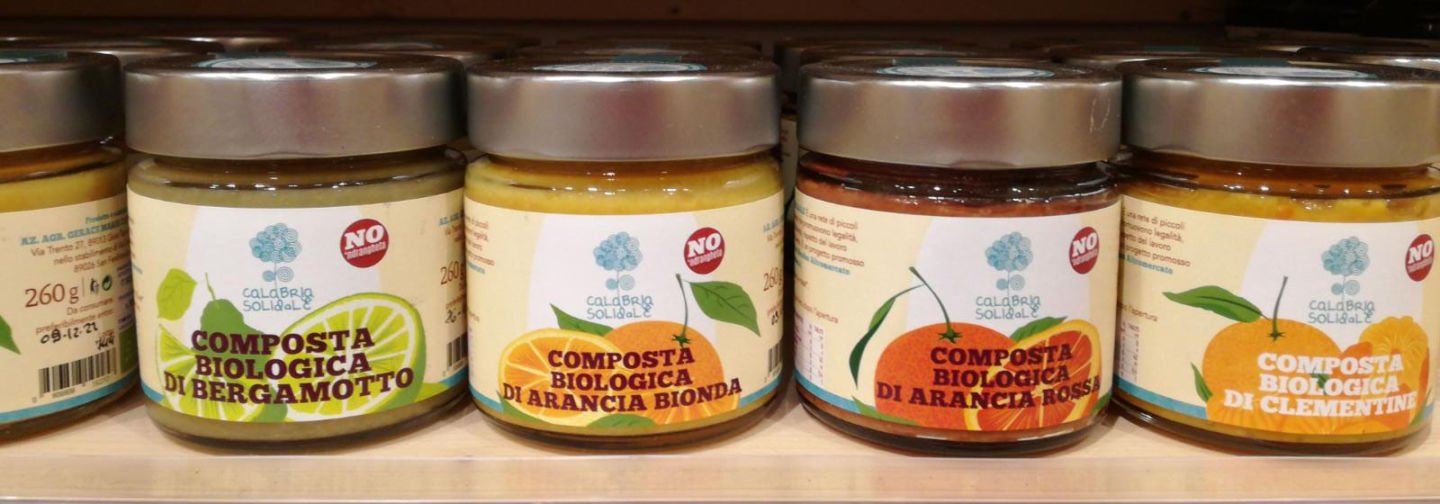 Le Terre di Zoè produce per Calabria Solidale composte biologiche e naturali di bergamotto, arancia bionda e rossa, clementine e quella di kiwi, limone e zenzero.