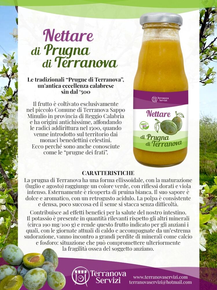 La Cooperativa Terranova Servizi produce per Calabria Solidale il nettare biologico di prugne di terranova.